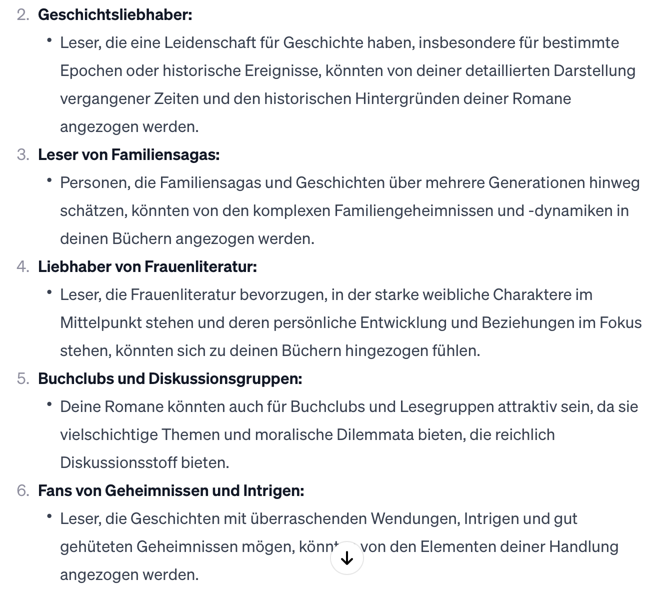 Du kannst die Zielgruppe deiner Bücher nicht genau identifizieren? Die KI kann hier ein wenig Licht ins Dunkel bringen. Je detaillierter deine Beschreibung zum Buch / deinen Büchern ist, desto treffender ist die Analyse.
